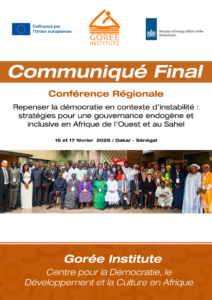 La présente note de synthèse restitue les principaux constats, enjeux et recommandations issus de la Conférence régionale organisée par le Gorée Institute les 16 et 17 février 2026 à Dakar dans le cadre du projet Recherche au Service de la Démocratie et de la Cohésion Sociale (RESDECS). Ce document propose une lecture cohérente des dynamiques en cours et identifie les axes d’action prioritaires d’une gouvernance renouvelée en Afrique de l’Ouest et au Sahel.